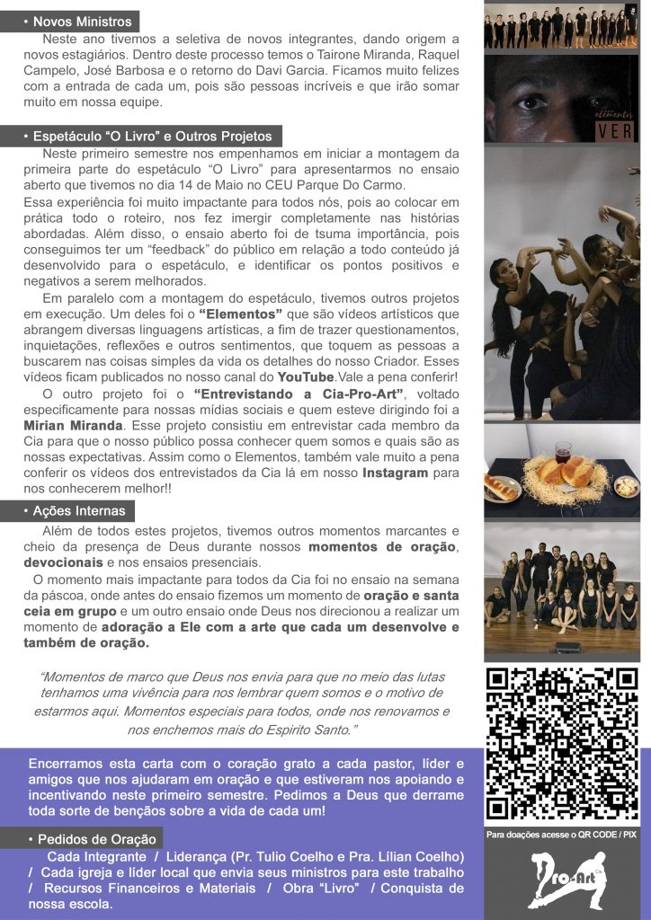 Esta é a carta informativa da Cia. Artística Pro-Art.