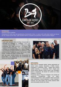 Olá, Esta é a carta de ações da Cia. Artística Pro-Art, somos formados por 11 artistas cristãos de diversas denominações em um único propósito: Uma